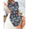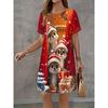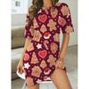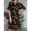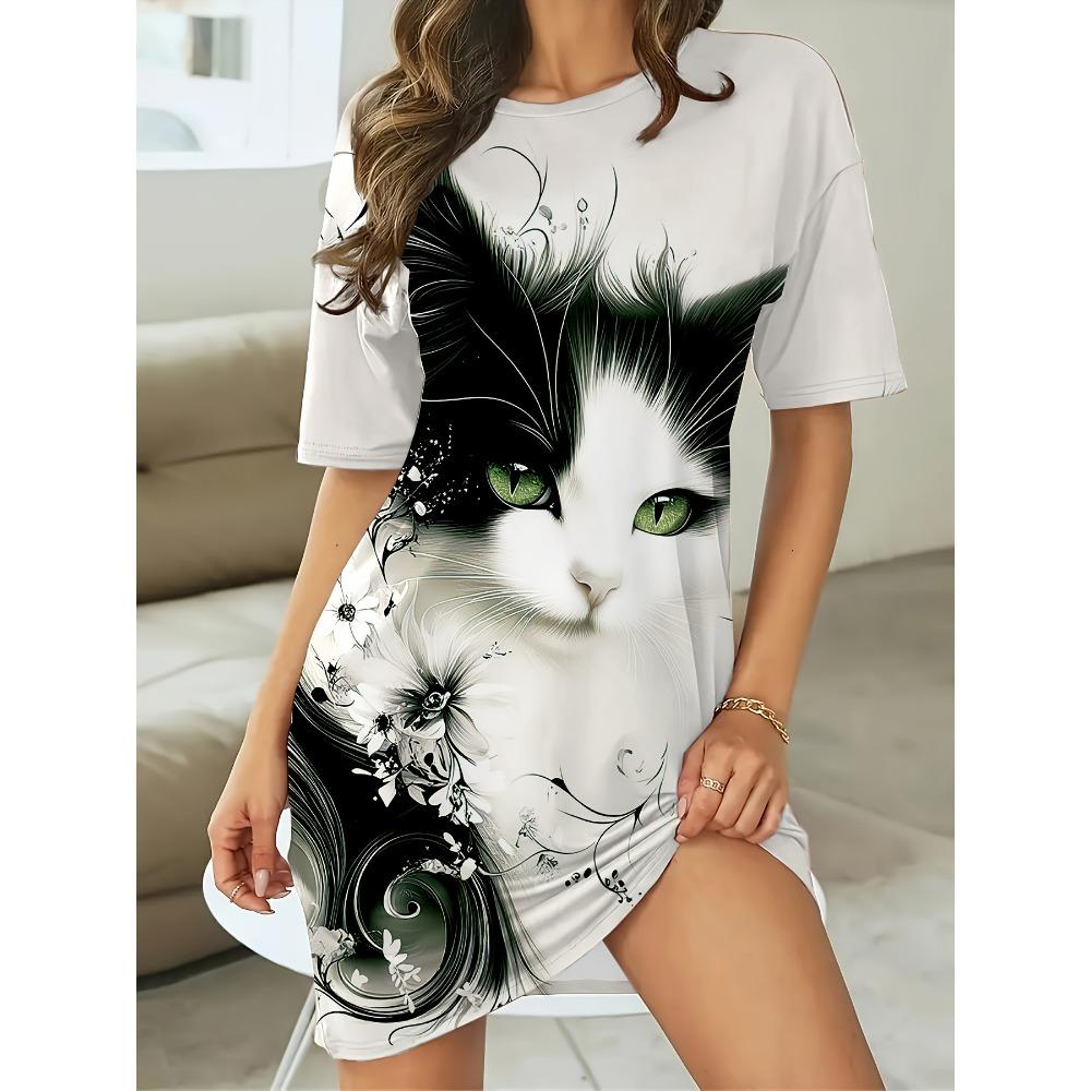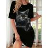 Uroczy nadruk z kotem, codzienna odzież domowa, damska, koszula nocna, sukienki z krótkim rękawem, luźny krój, odzież nocna, odzież domowa, sukienki do chodzenia po domu