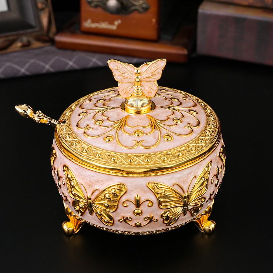 European retro light luxury butterfly seasoning jar metal handicrafts sugar cup exquisite butterfly dried fruit box high-end daily necessities