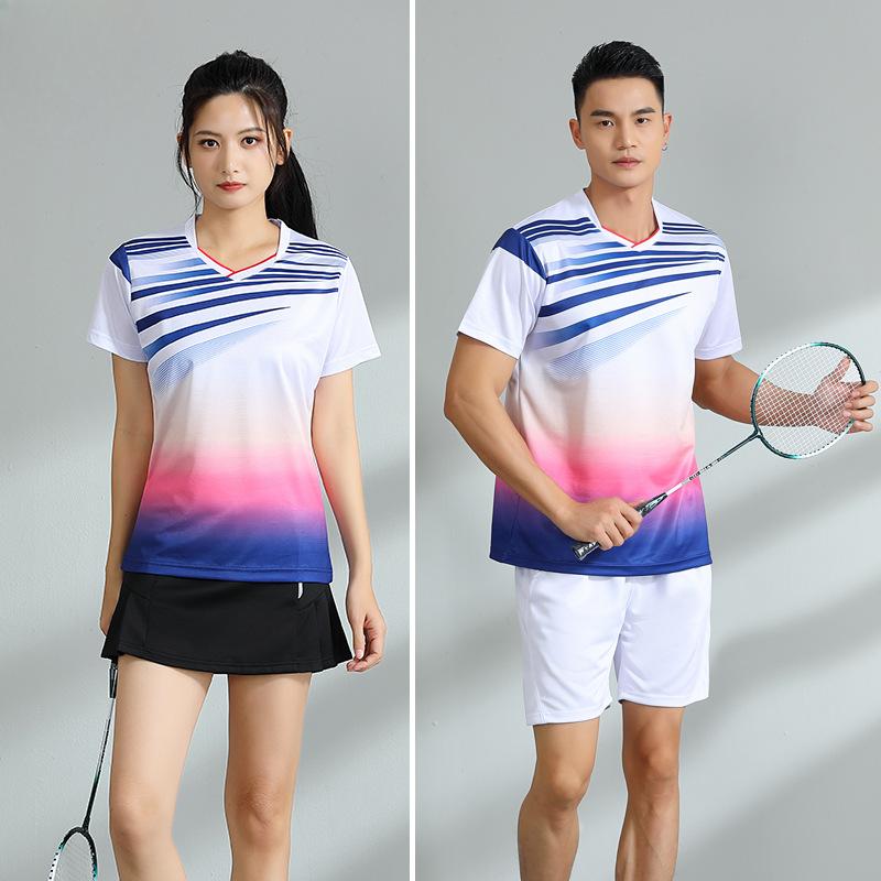 Badminton Clothes Outfit Mens and Womens Latest Short Sleeve Top Printed Tennis Table Tennis Activewear Quick-Drying