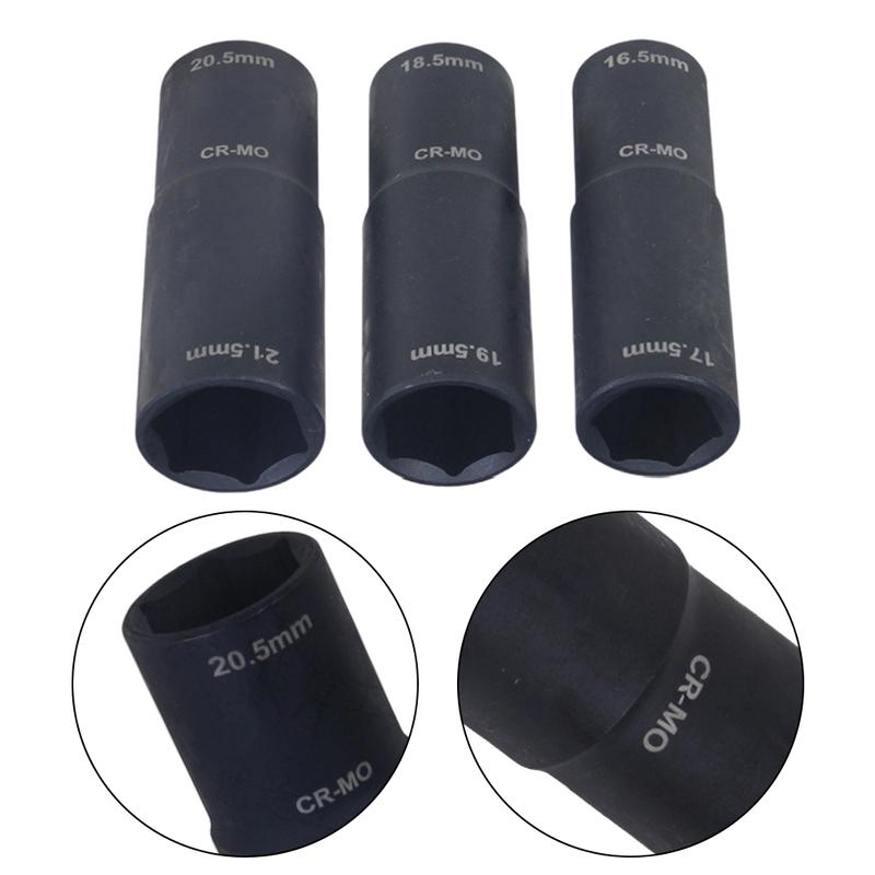 3pcs 1/2-inch Drive Lug Nut Flip Socket Set 18.5 X 19.5mm 20.5 X 21.5mm 17.5 X 16.5mm Wheel Nut Removal Socket Set Tools