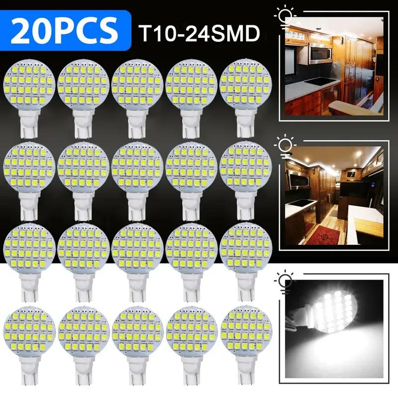 20pcs Universal Car Interior trument Lamp Atmosphere Light Reading Lamp T10/921/194 24 SMD LED Bulbs Car Lights Accessories