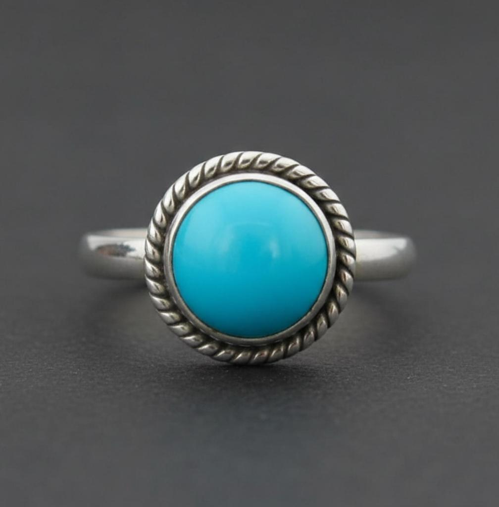 Arizona Turquoise Round Statement Ring, 925 Sterling Silver Jewelry, Minimalist Boho Rope Bazel Ring for Women