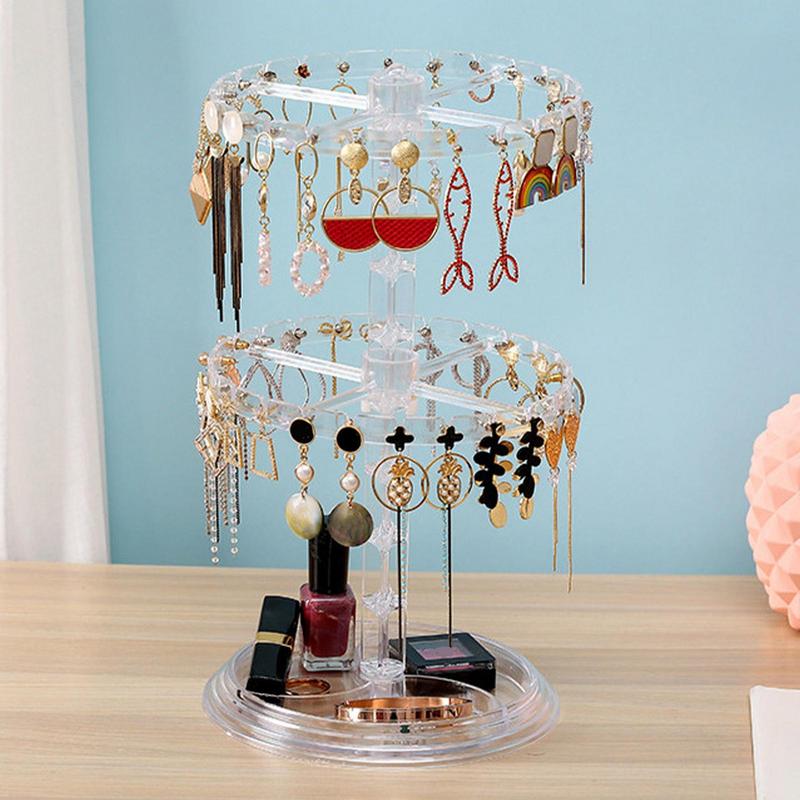 Earring Display 2 layers Earring Storage Rack 360 Degree Rotating Display Rack Rotating Jewelry Display Rack Home Organization