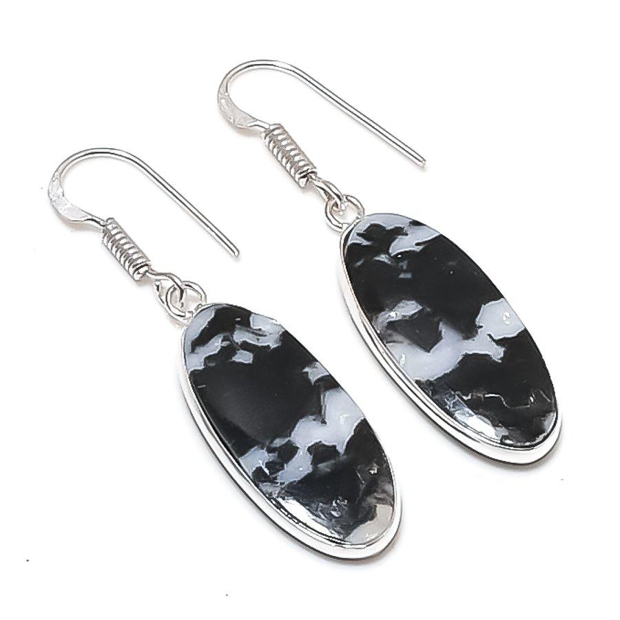 Naturalny Kamień Szlachetny Jaspis Bawole Srebro Próby 925 Biżuteria Kolczyk 1,81" AEE-11037