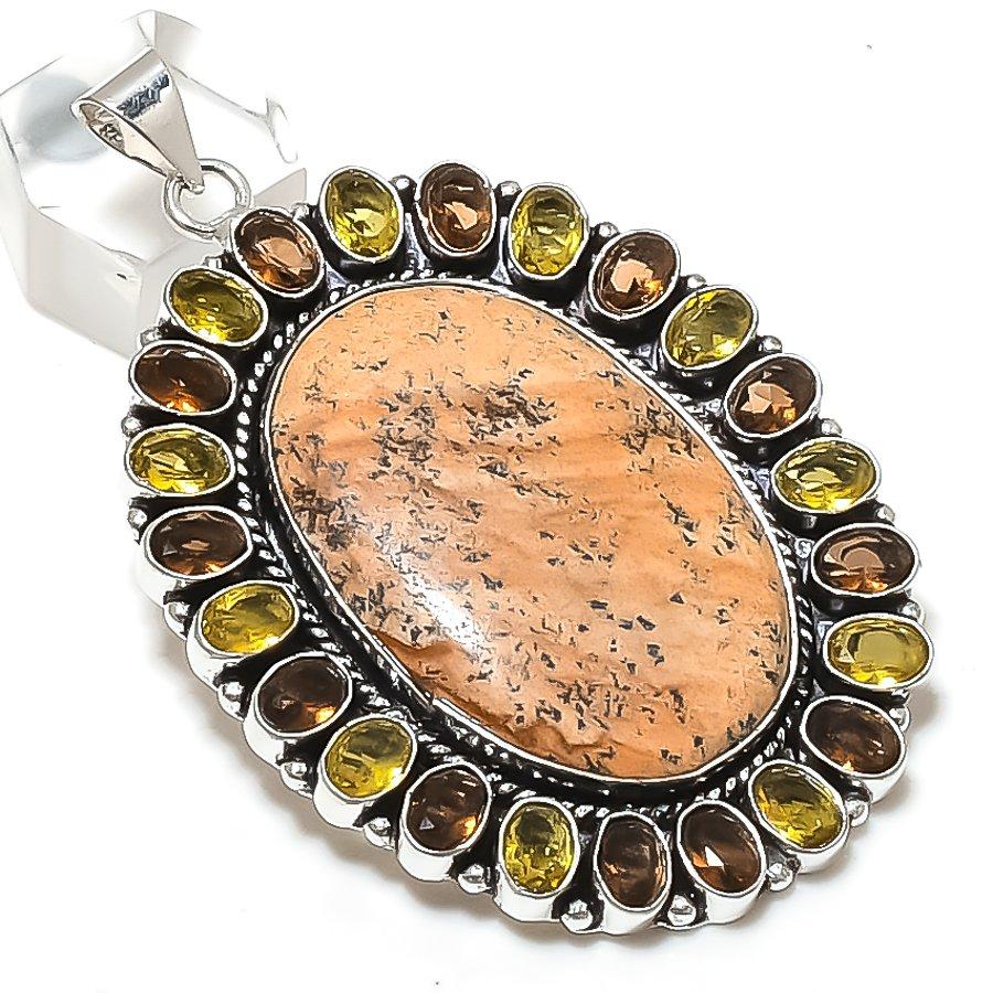 Naturalny Jasper Obrazkowy, Cytryn Srebro Sterling 925 Wisiorek Biżuteria 2,96" ETC-13798