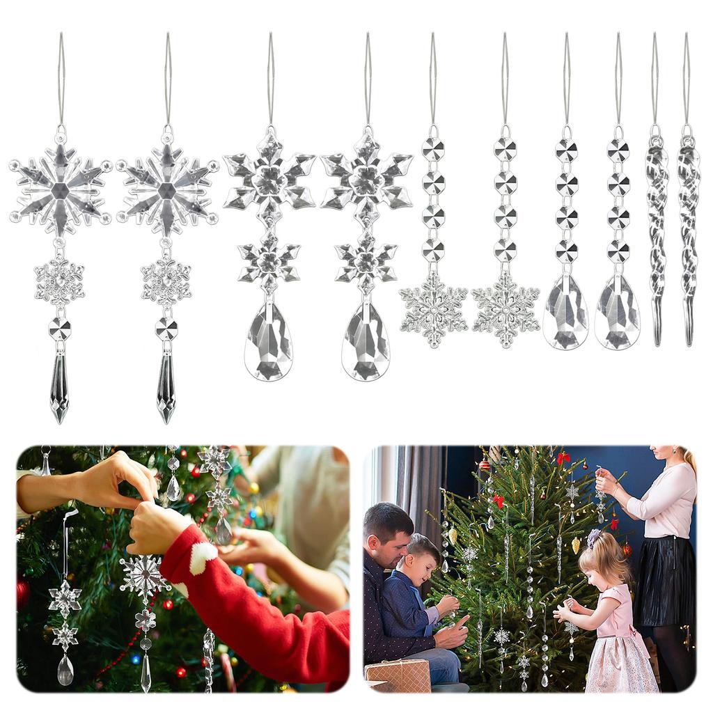 Acrylic Snowflake Pendant Multi-Purpose Icicle Drops Christmas Pendants Shiny Tree Hanging Ornament for Home Decor