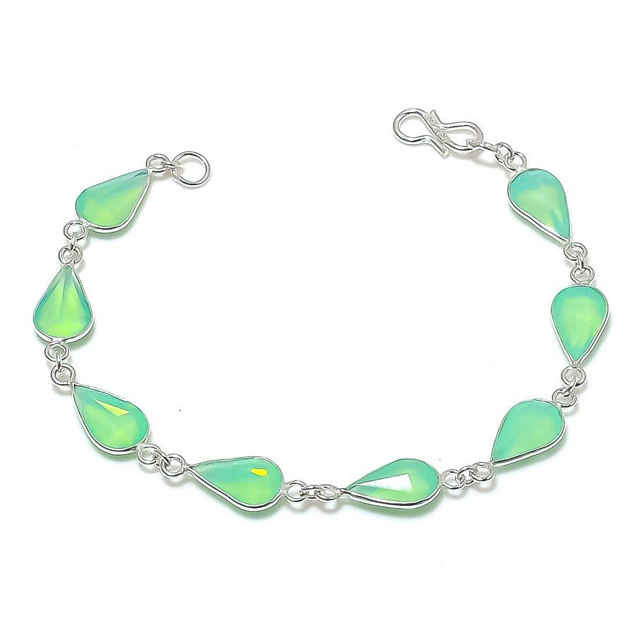 Naturalny Kamień Szlachetny Opal Ognisty Ręcznie Robiona Bransoletka ze Srebra Próby 925 7-8" ASB-2991