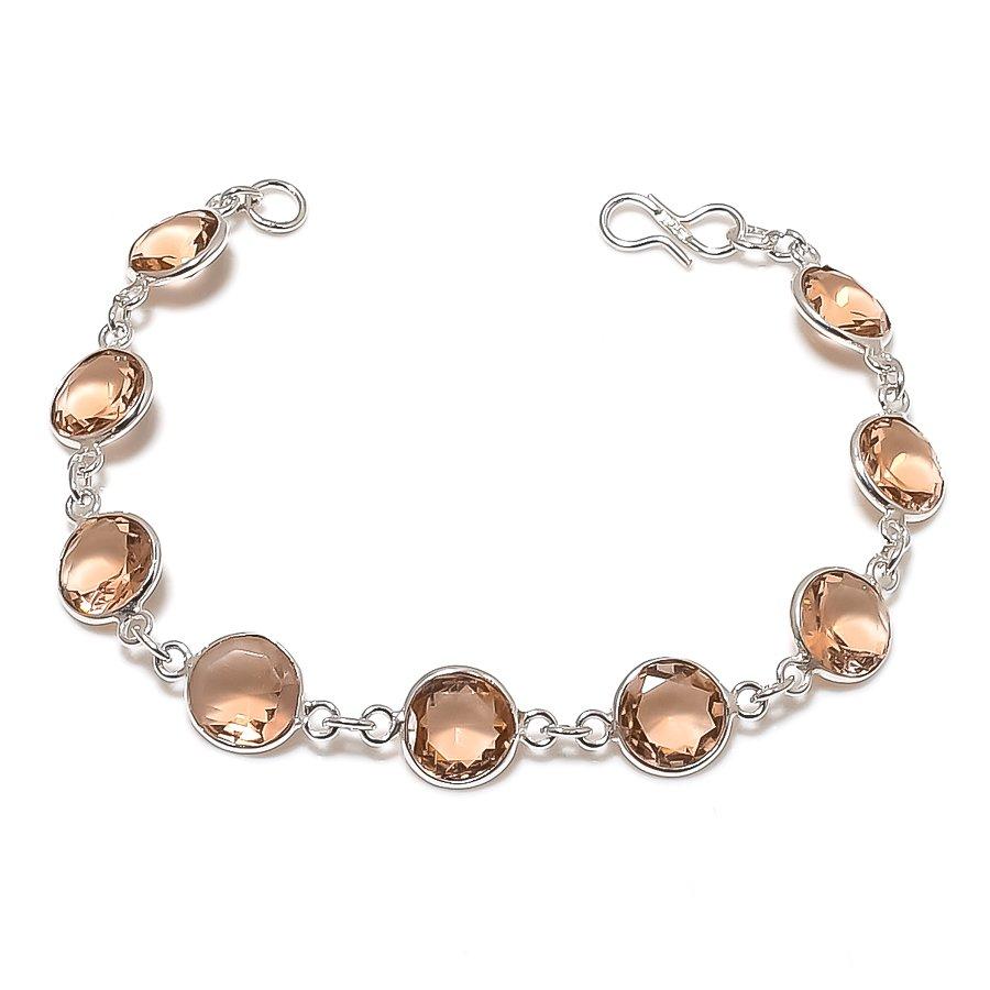 Naturalny Morganit Ręcznie Robiona Bransoletka ze Srebra Próby 925 7-8" ASB-2965