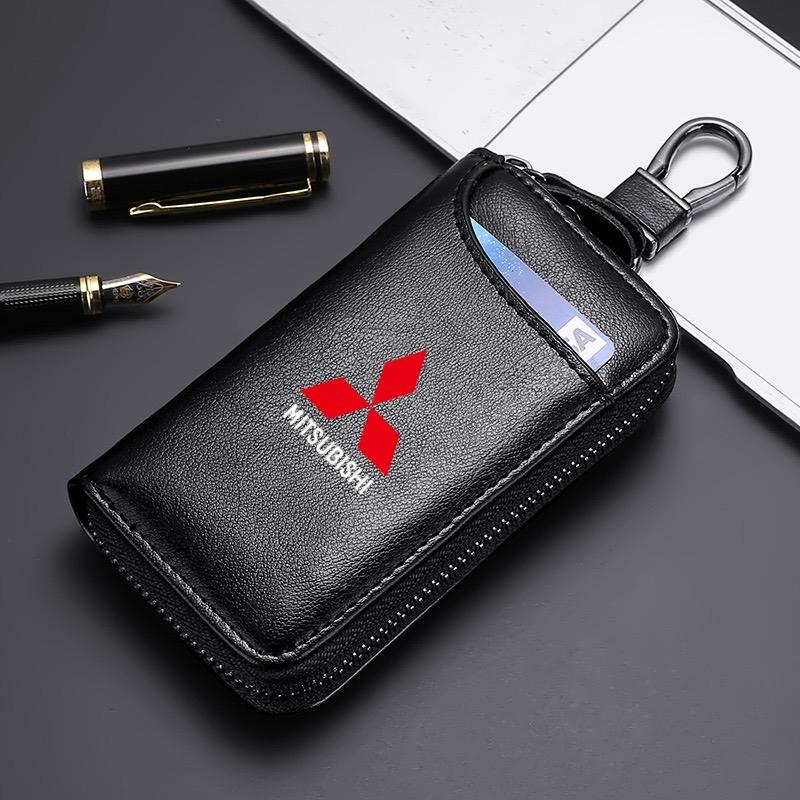 Skórzana Torba na Kluczyki Samochodowe Brelok z Logo Pojazdu Etui do Mitsubishi Outlander Lancer 9 10 ASX L200 Pajero Mirage Montero Eclipse