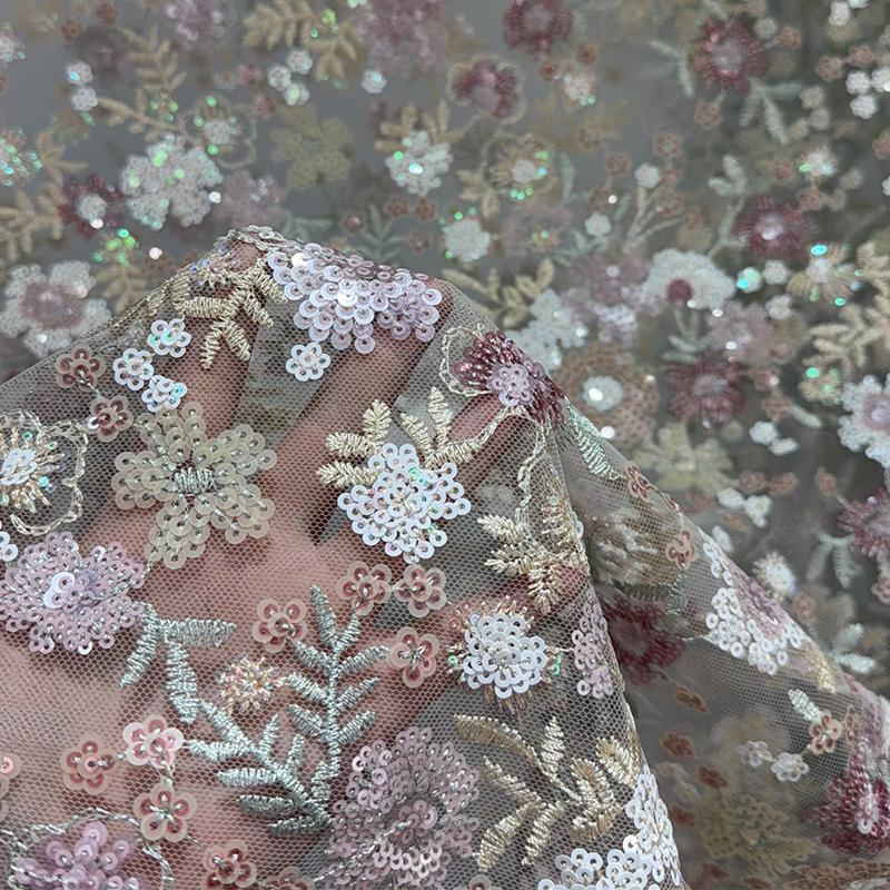 1yard Heavy Embroidery Wedding Dress Fabric Mesh Lace For DIY Sewing Cheongsam Bride Dress Embroidery Sequin Embroidery Cloth