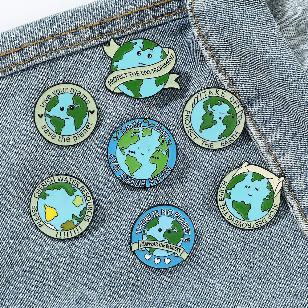Popular Love the Earth Brooch Earth Day Metal Badge Green Round Wear Medal Collar Pin