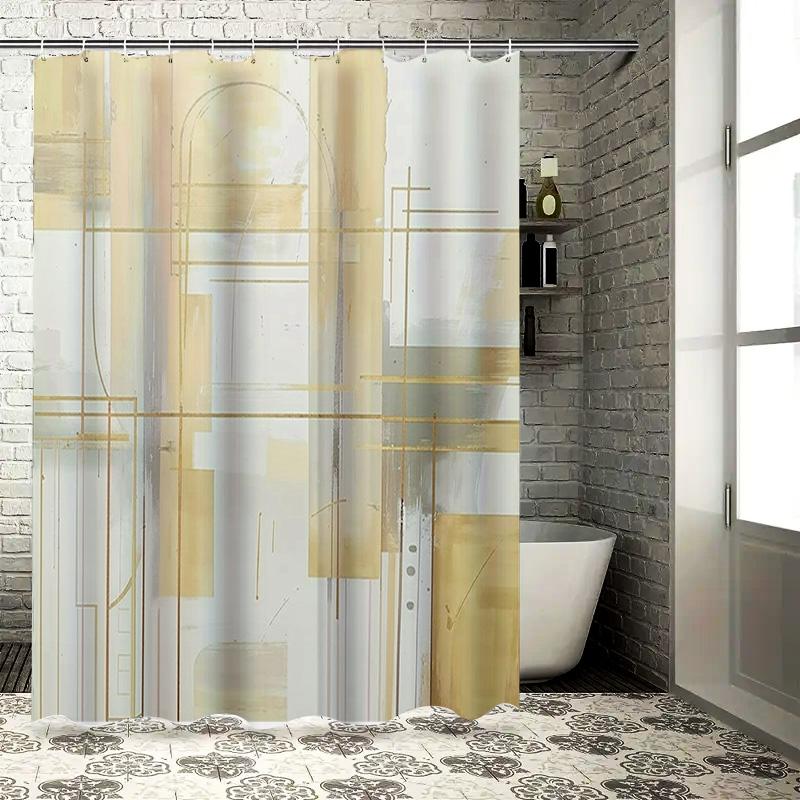 Luxury Bath Shower Curtain with Artistic Design White and Beige Abstract Watercolor Pattern
