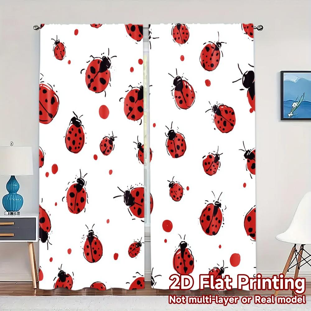 2pcs 2D FLAT PRINTING Curtains (Without Rod) Ladybug Parade(1) Popular Minimalist Curtains Machine Washable Fabric Curtains