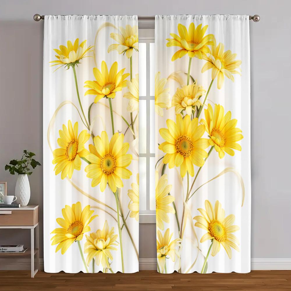 2pcs Minimalist Curtains Embossed Sunflower Versatile Durable Polyester (without rod) Decorations Inside Ldeal for Bedroom