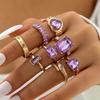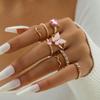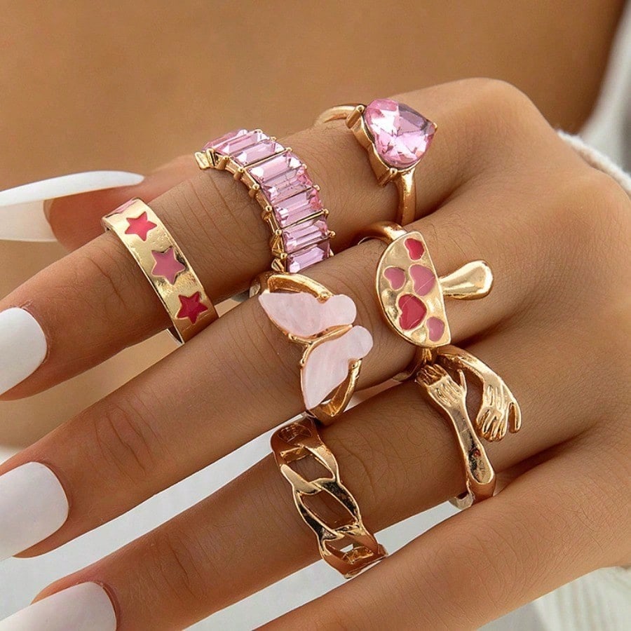Pink oil drip mushroom star gemstone ring Butterfly heart diamond palm ring set