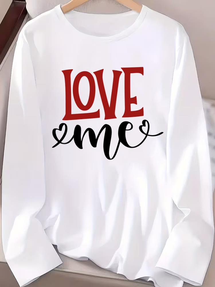 (Asian Size) Women T Shirt Tee Lady Printed watercolor love style Female Clothing Casual Fashion Top Long Sleeve Graphic T-shirts