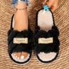 Ciepłe kapcie Crisscross Fluffy Home, miękka podeszwa z odkrytymi palcami i pluszową podszewką, antypoślizgowe, wyciszające kapcie podłogowe, zima i jesień