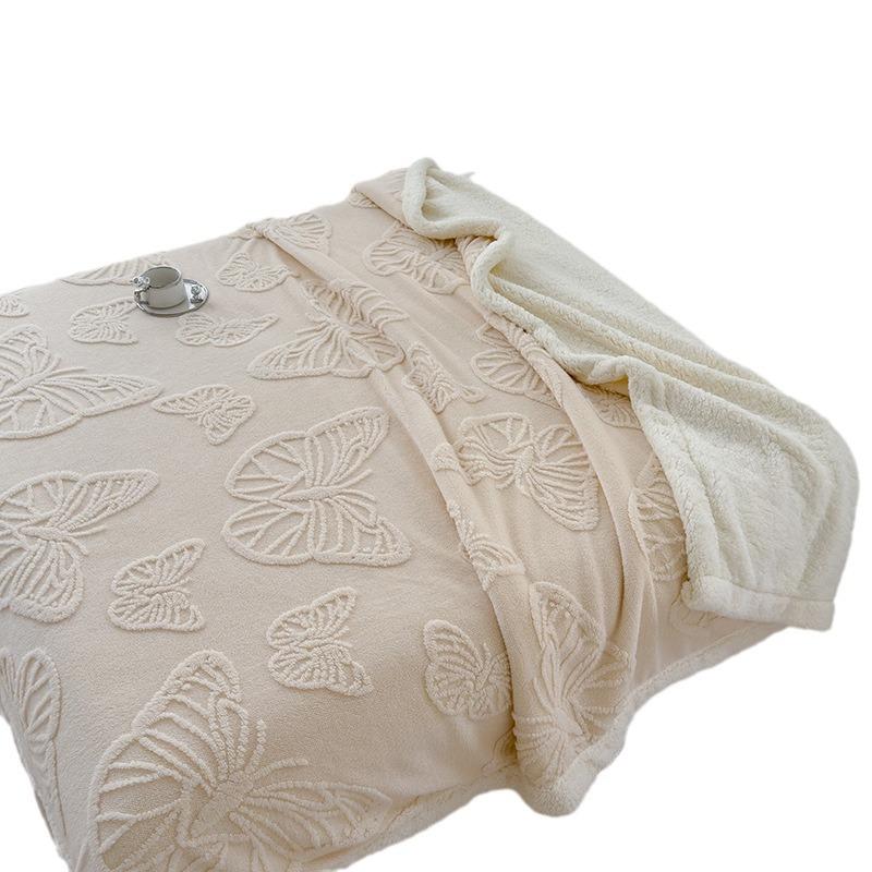 Soft and Comfortable Solid Color Butterfly Jacquard Multi-functional Nap Blanket All Seasons Bedroom Warm Blanket
