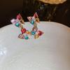 Mori sweet diamond-set love flower earrings temperament small fresh stud earrings personality cute girl heart earrings