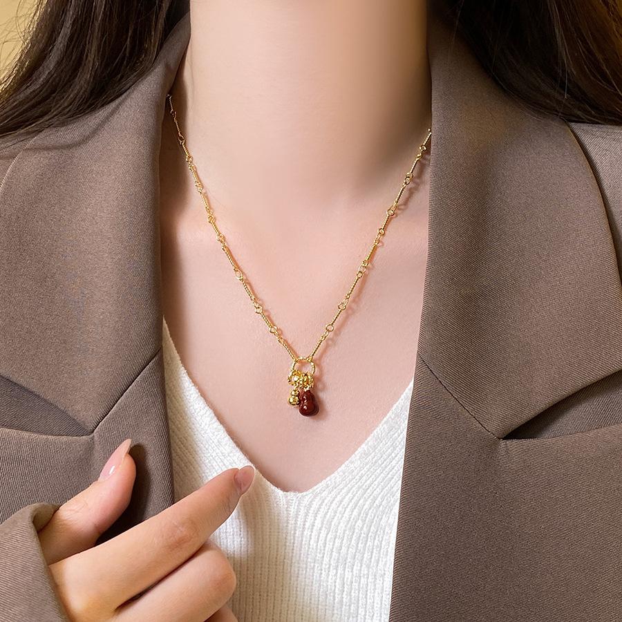 18k real gold electroplated red oil drip gourd pendant necklace temperament personalized collarbone chain necklace
