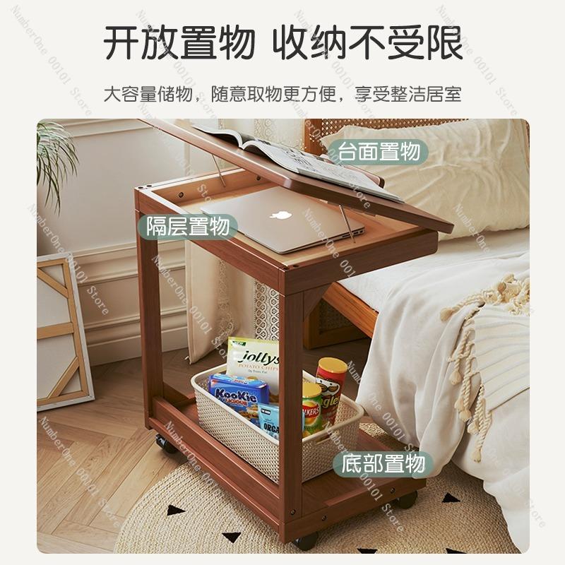 Small Movable Coffee Table with Flip-top Storage,Sofa Side Cabinet with Wheels,Bedside and Living Room Companion Desk