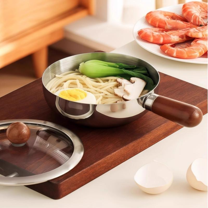 Mały rondel z drewnianym uchwytem ze stali nierdzewnej Patelnia do sosów Patelnia do makaronu na jedną porcję Patelnia do omletów Wielofunkcyjny garnek