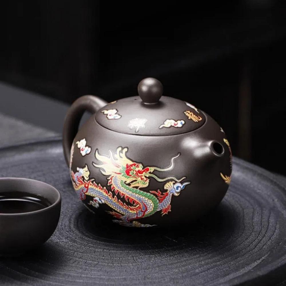 Ceramic Purple Clay Teapot Hand-made Color-changing Teapot Tea Cup Set Dragon and Phoenix Design Infuser Teapot Tea Maker