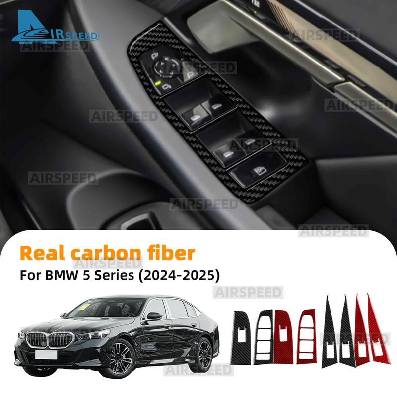 Real Carbon Fiber Car Window Switch Panel Sticker LHD RHD Trim For BMW 5 Series i5 G60 G61 G68 2024 2025