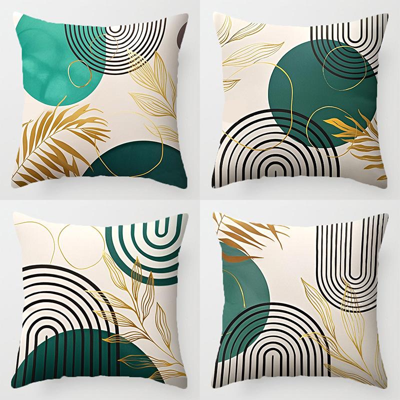 Home Decor Geometric & Leaf Pattern Decorative Pillow Covers Pattern Cushion Cover Suitable for Sofa Bedroom Car Pillow Cover