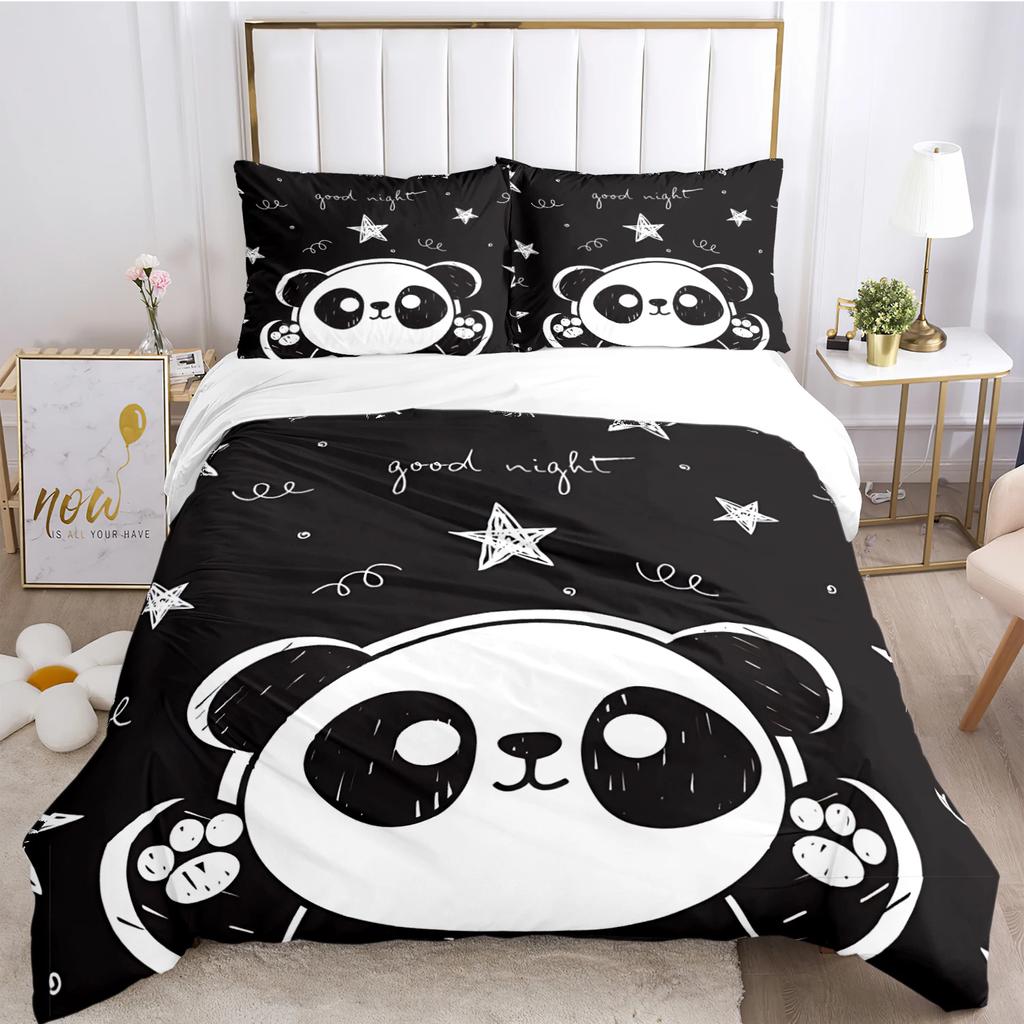 Urocza Poszewka na Kołdrę Panda Kreskówkowa Kawaii Zestawy Pościeli Miękka Poszewka na Kołdrę i Poszewki na Poduszki dla Nastolatków PojedynczaPodwójnaQueenKing