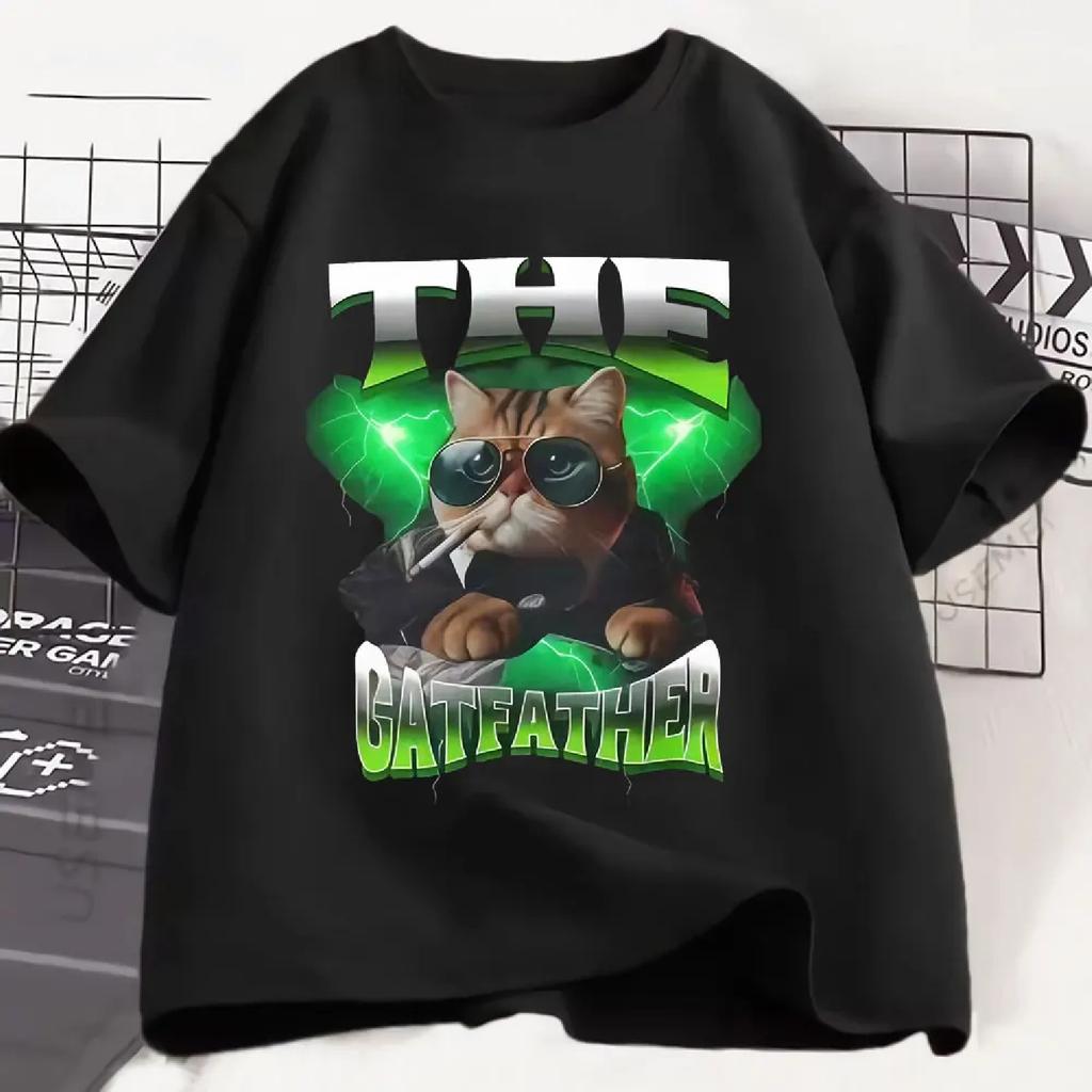 Modna Męska Harajuku Wysokiej Jakości 2025 Humor Kreskówka Gang Kot Mem Koszulka Koszulka Trendy Luźna Przytulna Okrągły Dekolt Koszulki