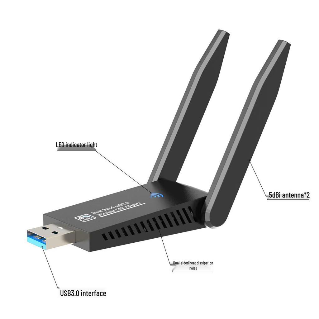 Dual-Band Wireless USB Network Adapter, 1300Mbps, 5G, Driver-Free.