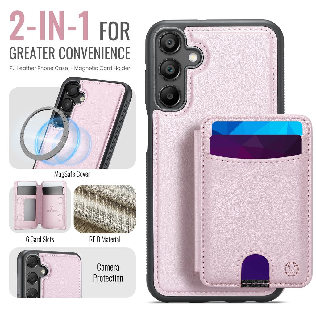 For Samsung Galaxy A25 5G (Global) (161mm) Magnetic Case JEEHOOD J10 Leather Back Phone Cover with Detachable Card Holder Kickstand