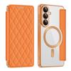 For Samsung Galaxy S26+ Magnetic Case RFID Blocking Card Holder Rhombus PU Leather Phone Cover with Lens Film