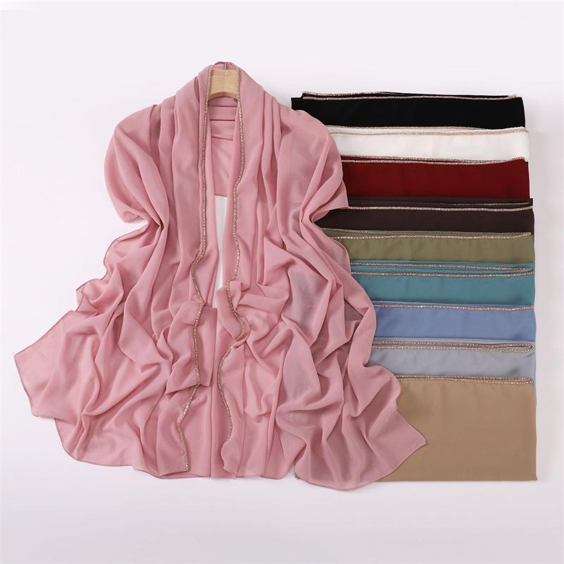 Metal Bronze Jewelry Chain Bubble Chiffon Hijab Shawls High Quality Bling Bling Wrap Beach Bufandas Ramadan Islamic Muslim Sjaal
