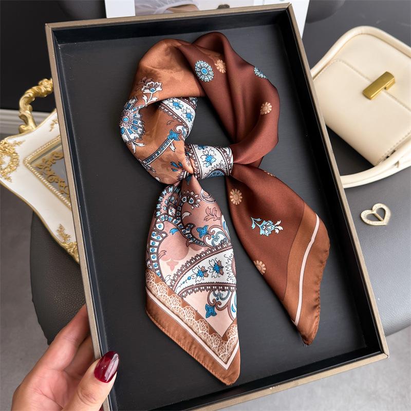 Luxury Retro Paisley Print Women Silk Scarf Bandana Hair Bands 70Cm Square Scarves Smooth Summer Satin Hijab Wrap Headband