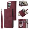 Etui portfel z zamkiem błyskawicznym na Samsung Galaxy S26 Ultra, wiele przegródek na karty, skórzane etui na telefon z paskiem na nadgarstek