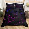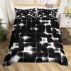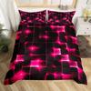 Abstract King Duvet Cover Modern Geometric Grid Square Bedding Set Red and Black Neon Light Line Geometry Themed Quilt Cover