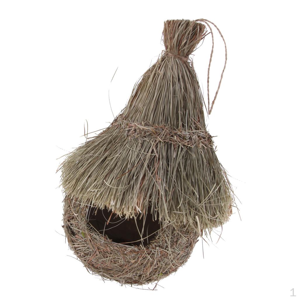 - Retro Vintage Ręcznie robiony domek dla ptaków z trawy słomianej, chroni papugi lub ptaki przed zimnem i innymi obrażeniami od zwierząt.