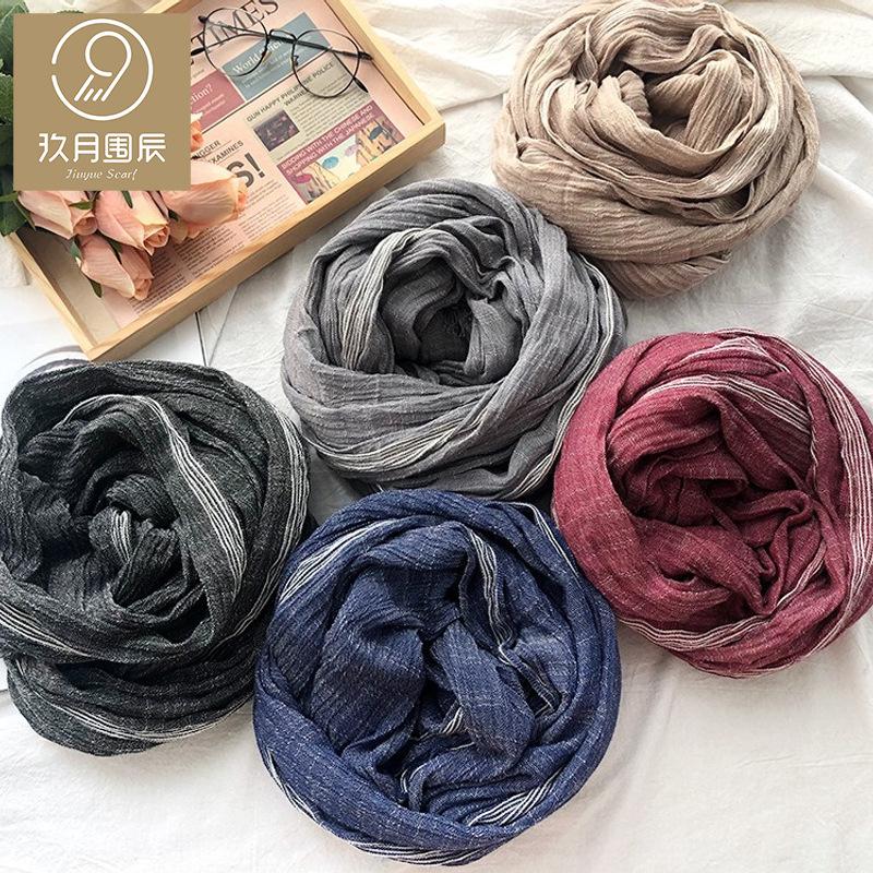 Fashion Striped Cotton Linen Scarf For Men Women Soft Warm Pashmina Short Tassel Scarves Male Accessories Bufandas Shawls
