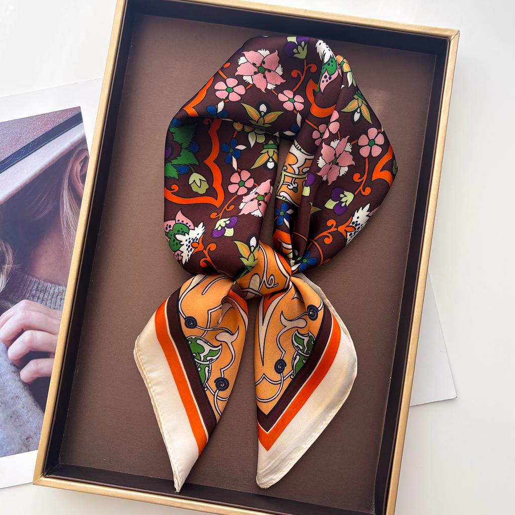 Luxury Square Scarf For Women Elegant Ladies Hijab Retro Floral Print Neckerchief Bandanas Soft Stain Faux Silk Scarves Shawl