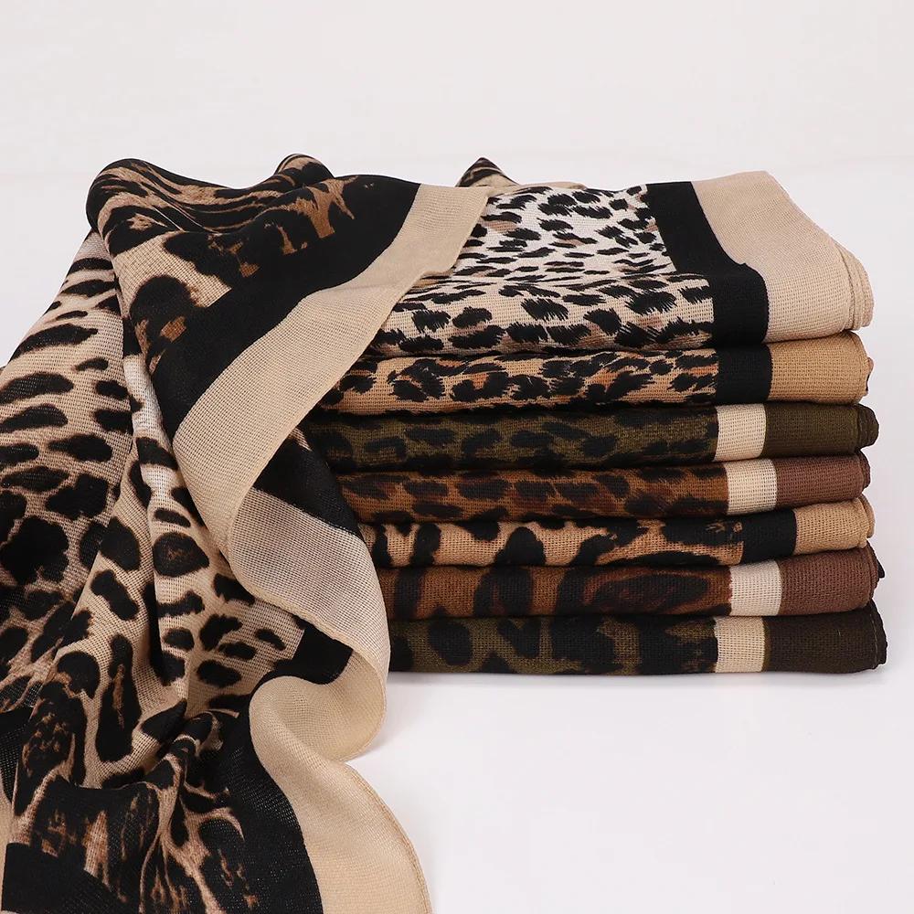 New Design Leopard Print Square Scarf Hijab Voile Large Shawl Hijabs For Women Muslim Fashion Scarf Headwraps Turban Ramadan