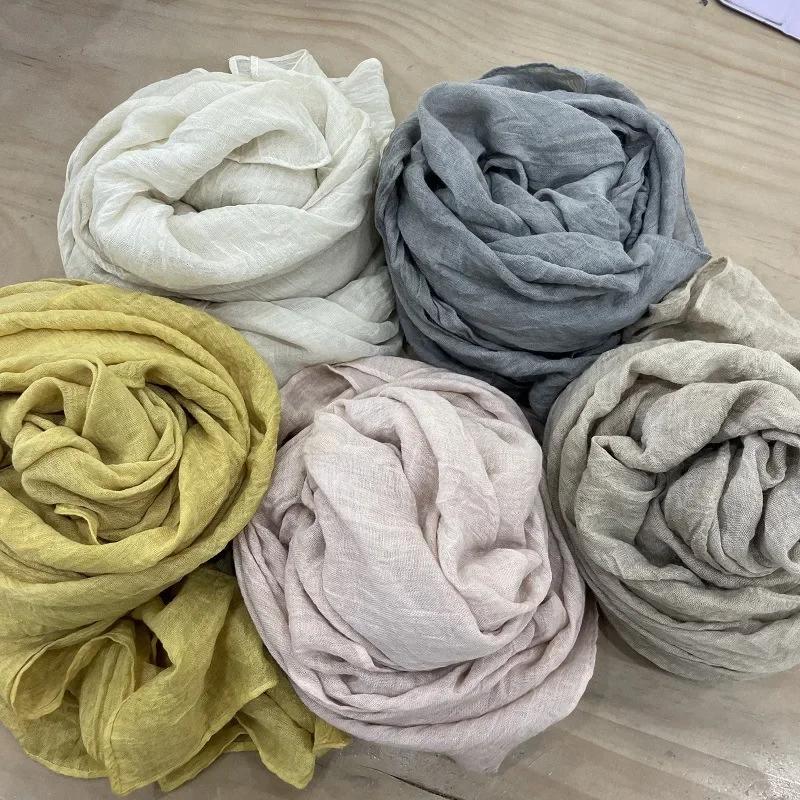 Vreovor Plain Tie Dye Scarf For Women Thin Style Spring And Autumn New Solid Color Retro Cotton Soft Versatile Shawl