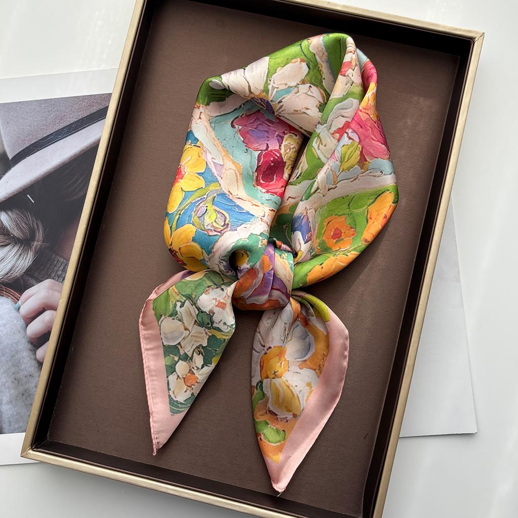 Floral Print Women Scarf Silk Square Neckerchief Spring Autumn Shawl Foulard Headbanda Stole Scarves Bufanda Ties