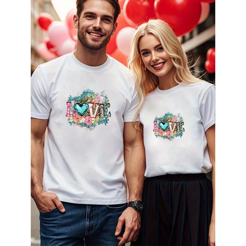 1PCS Sweet Cool Style Valentine's Day Couple Short Sleeve Casual Basic Top