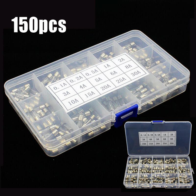 Complete Kit of 150pcs 5x20mm Quick Blow Glass Tube Fuses from 0 1A to 30A for Safe Electrical Applications and Repairs