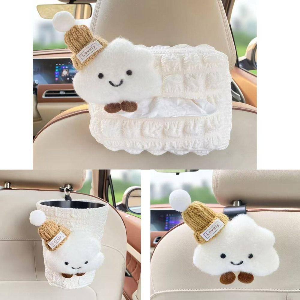 Cute Cloud Car Tissue Box Cartoon Hat Universal Vehicle Trash Can Multifunctional Dirt-resistant Car Accessories Set