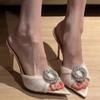 White mesh pointed open-toed rhinestone thin heel high-heeled sandals women wear gentle temperament wind