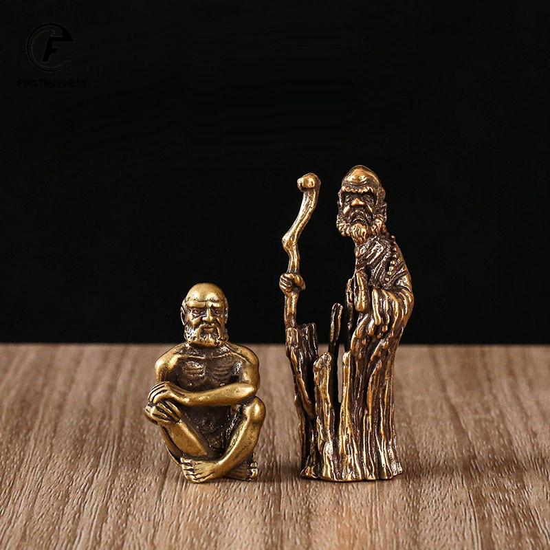 Retro Brass Sitting Bodhidharma Buddha Statue Desk Ornaments Metal Copper Dharma Figurines Miniatures Home Decorations Accessory