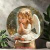 Metal Wall Art Aluminum Decor, Angel Theme Round Floral Sign, Home Living Room Cafe Decor